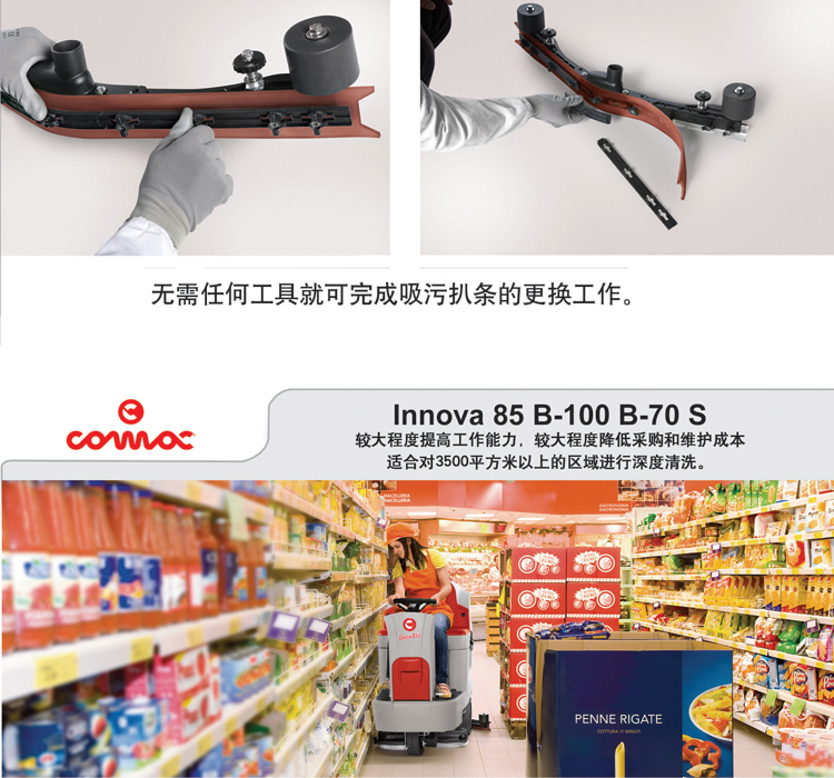 意大利高美COMAC驾驶式洗地车Innova85B科迈柯电瓶式洗地吸干机