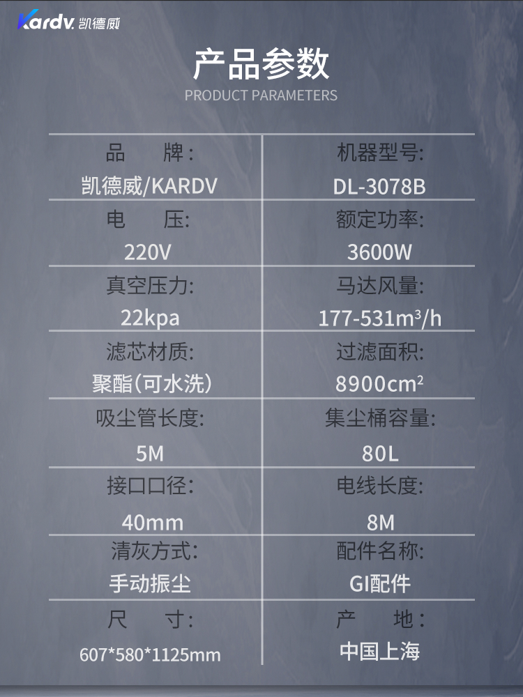 凯德威Kardv工业吸尘器DL3078B工厂车间仓库酒店物业地面吸尘清灰